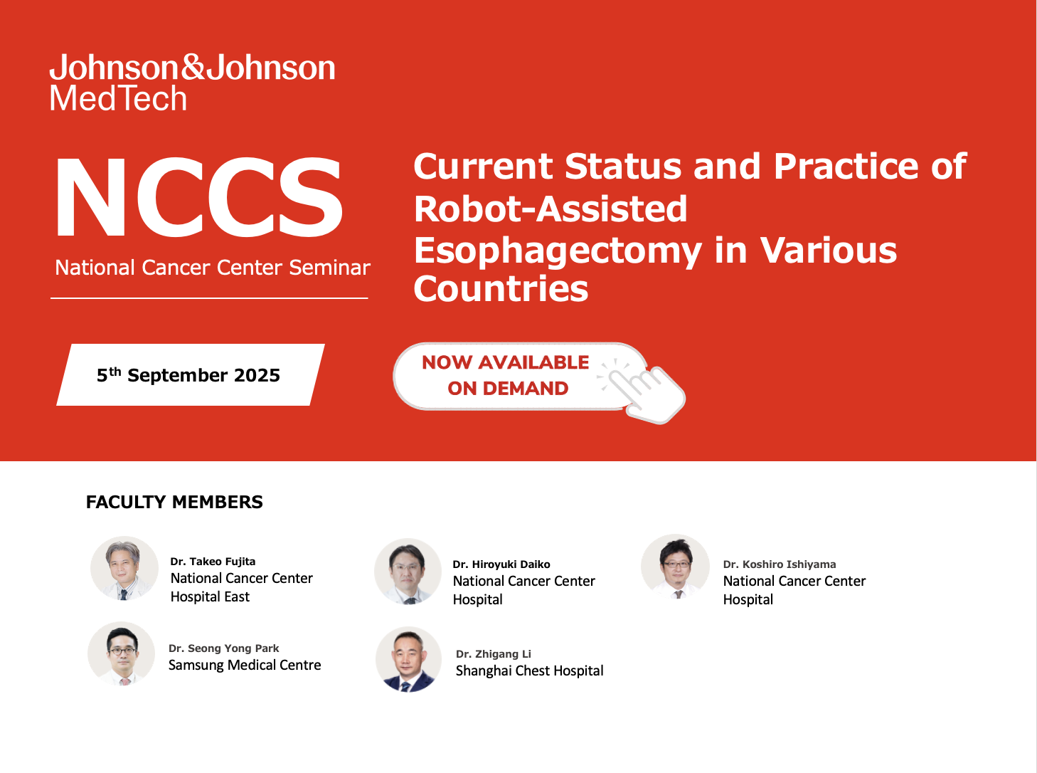 This webinar will bring together the latest trends from Japan, Korea and China, exploring innovations and the future of robot-assisted esophagectomy, which is gaining global attention. Leading specialists from each country will share cutting-edge insights and clinical updates.